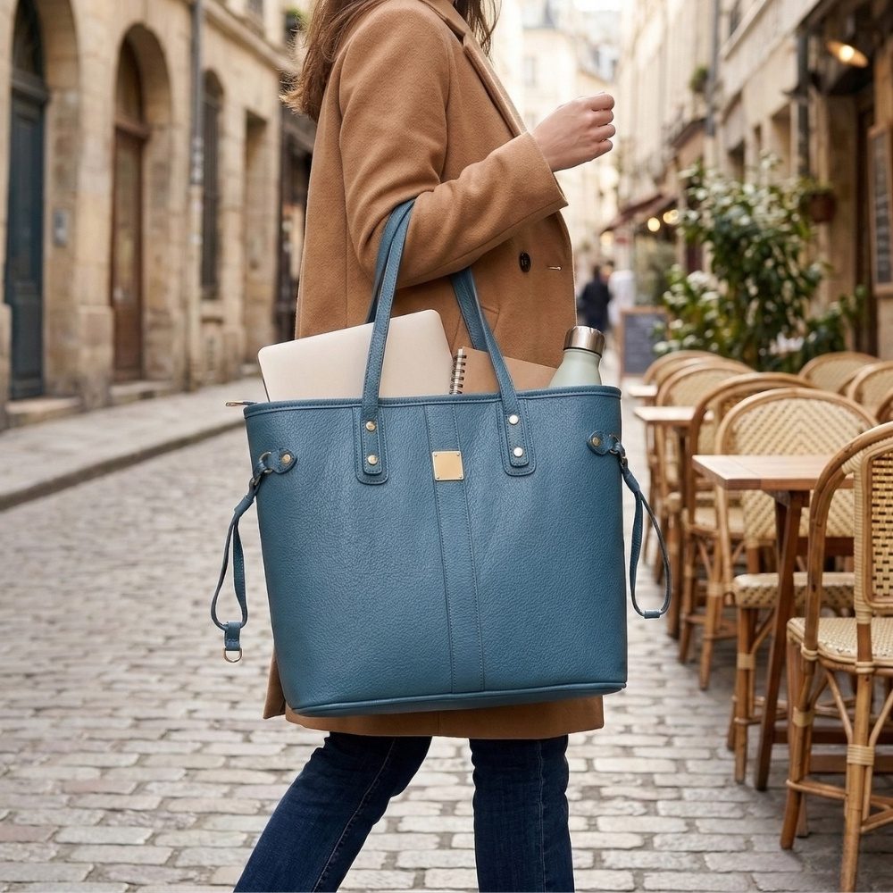 BOLSO TOTE BAG DE CUERO PU AMPLIO CON COMPARTIMIENTOS – Cartera para Trabajo y Uso Diario