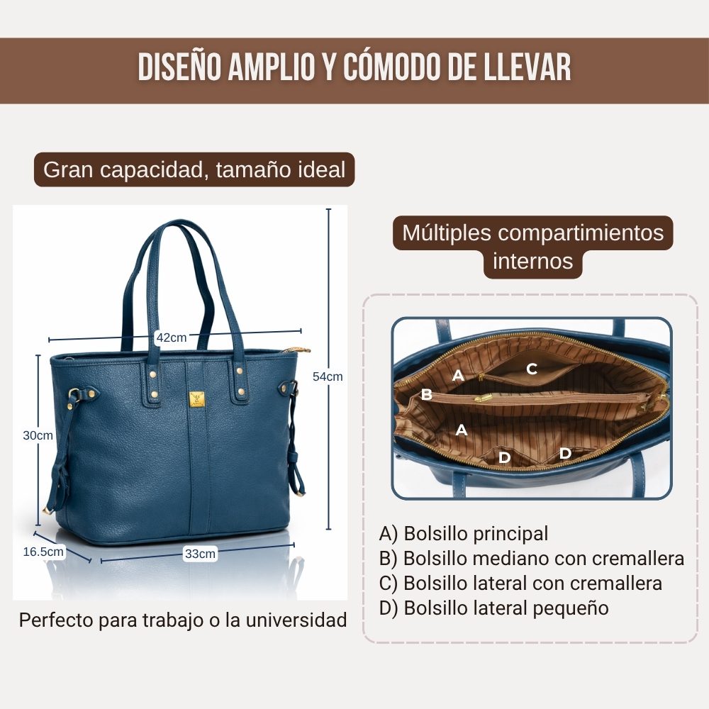 Un bolso que aporta equilibrio entre organización, comodidad y presencia en tu día a día.