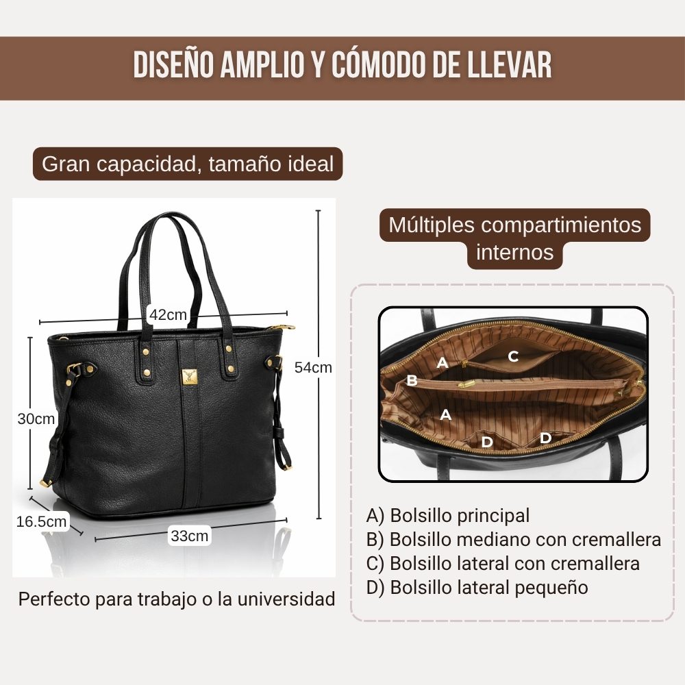 BOLSO TOTE BAG DE CUERO PU AMPLIO CON COMPARTIMIENTOS – Cartera para Trabajo y Uso Diario