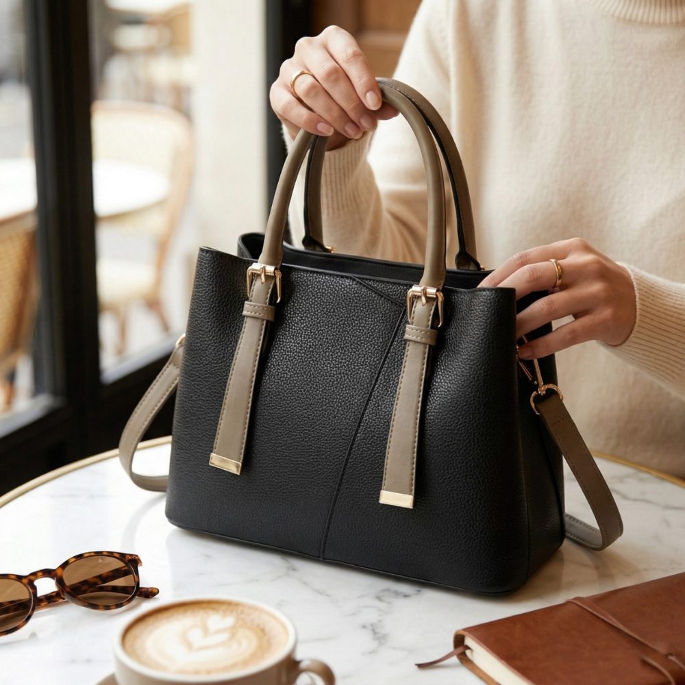 Bolso Tote Elegante Cuero PU Organizada y Versátil – Negro