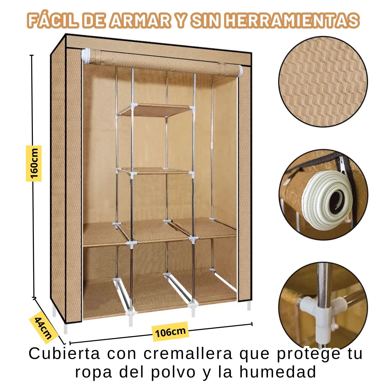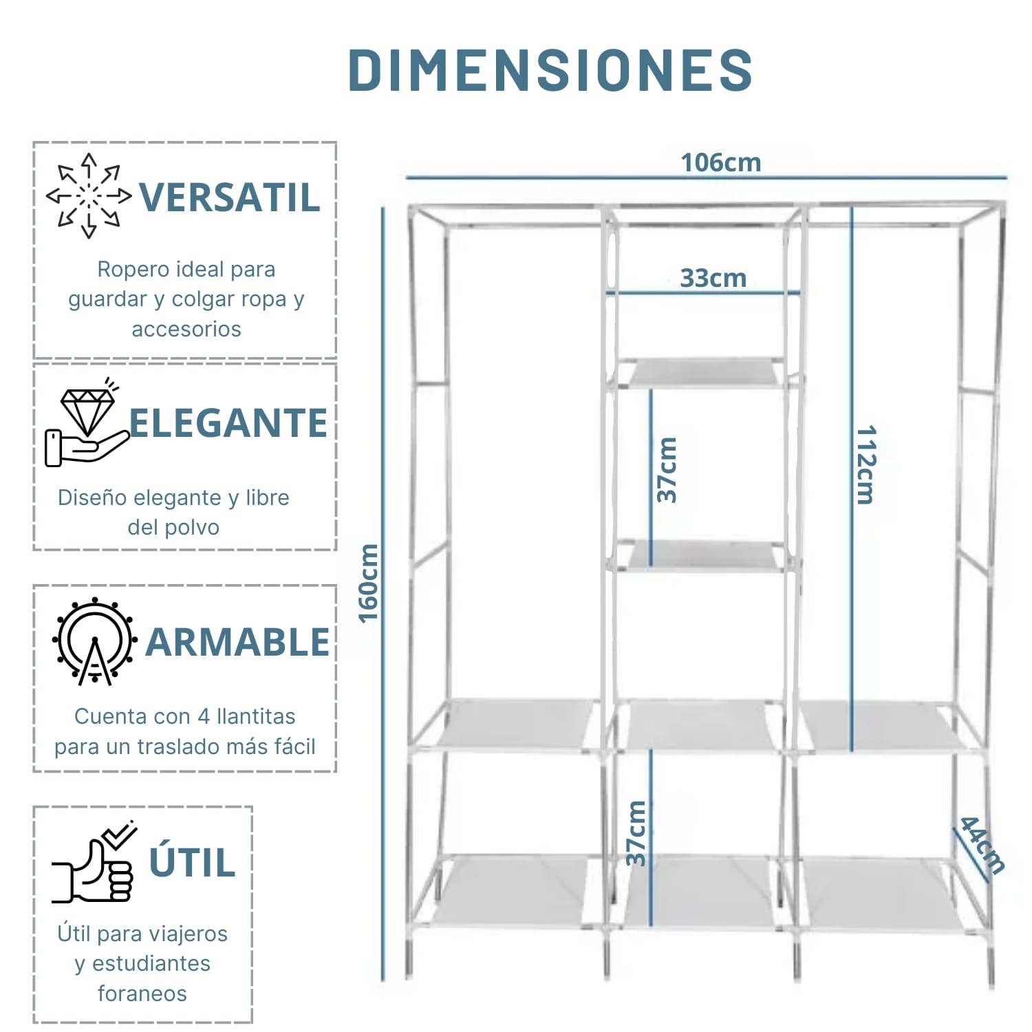 Organiza tu ropa y accesorios con estilo, ideal para hogares con espacio limitado, es la solución perfecta para quienes buscan un ropero o armario temporal, ligero y fácil de montar. Ideal para viajes de trabajo, alquileres temporales o están en constante movimiento.